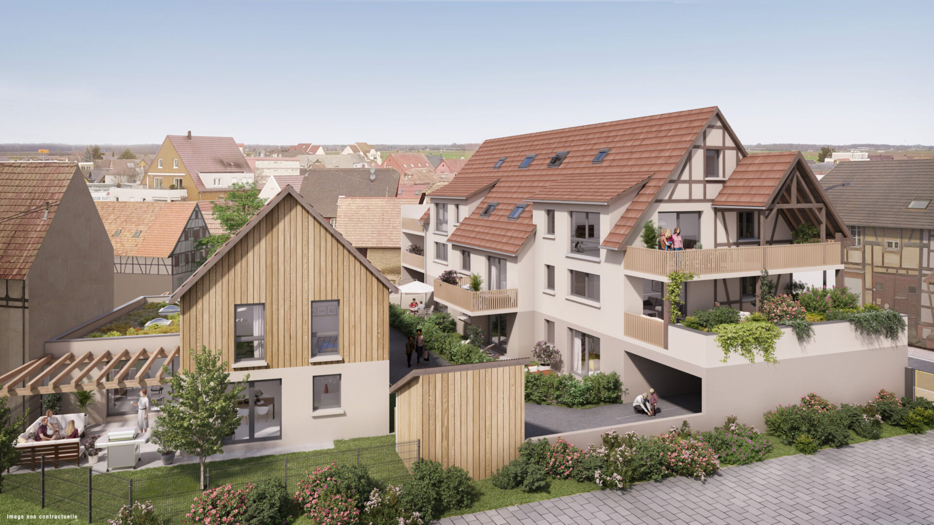 En plein centre ville d'Erstein - rue du 28 novembre - la Résidence 2728 vous propose un endroit d’exception, combinant sérénité, bien-être et accès direct à toutes les facilités du quotidien. Il se compose de 2 villas ainsi que d’une résidence intime de huit appartements seulement.